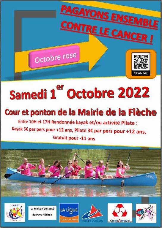 Dans le cadre d'Octobre Rose organisé pour la lutte contre le cancer, la Section Canoë-Kayak a proposé une animation sur le Loir mais aussi ''à terre'' avec des animations proposées par la section Gymnastique, la Maison de santé et l'Ecole d'infirmières de La Flèche.